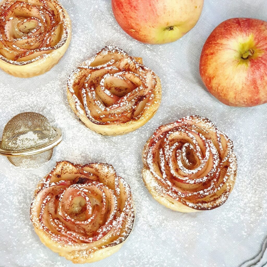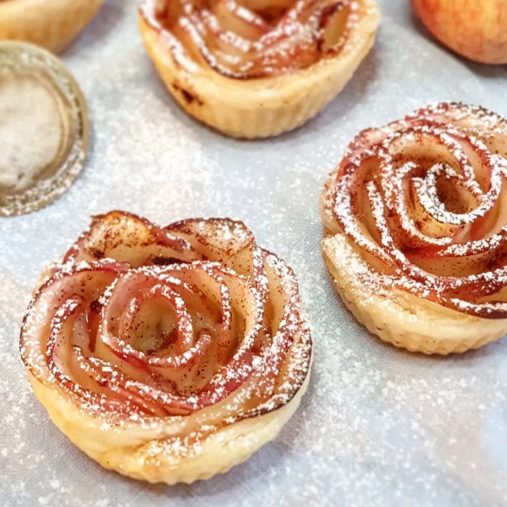 7. Vik över den resterande delen av smördegen och rulla ihop hela längden med smördeg och äpplen till en ros (som om du skulle rulla en kanelbulle).